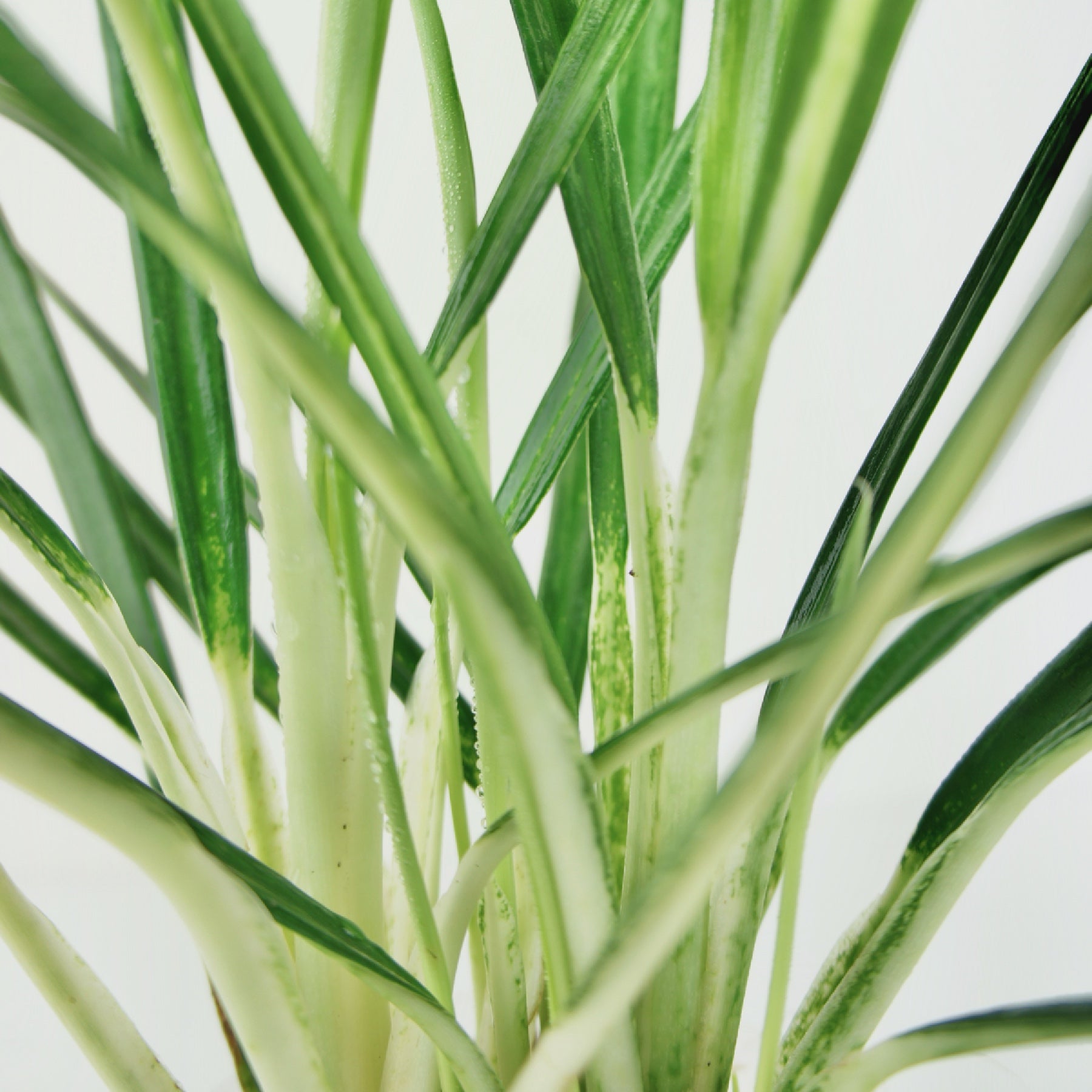 Feuilles fines allongées brillantes vertes sont marquées d'éclat vert tendre. Un feuillage très lumineux.