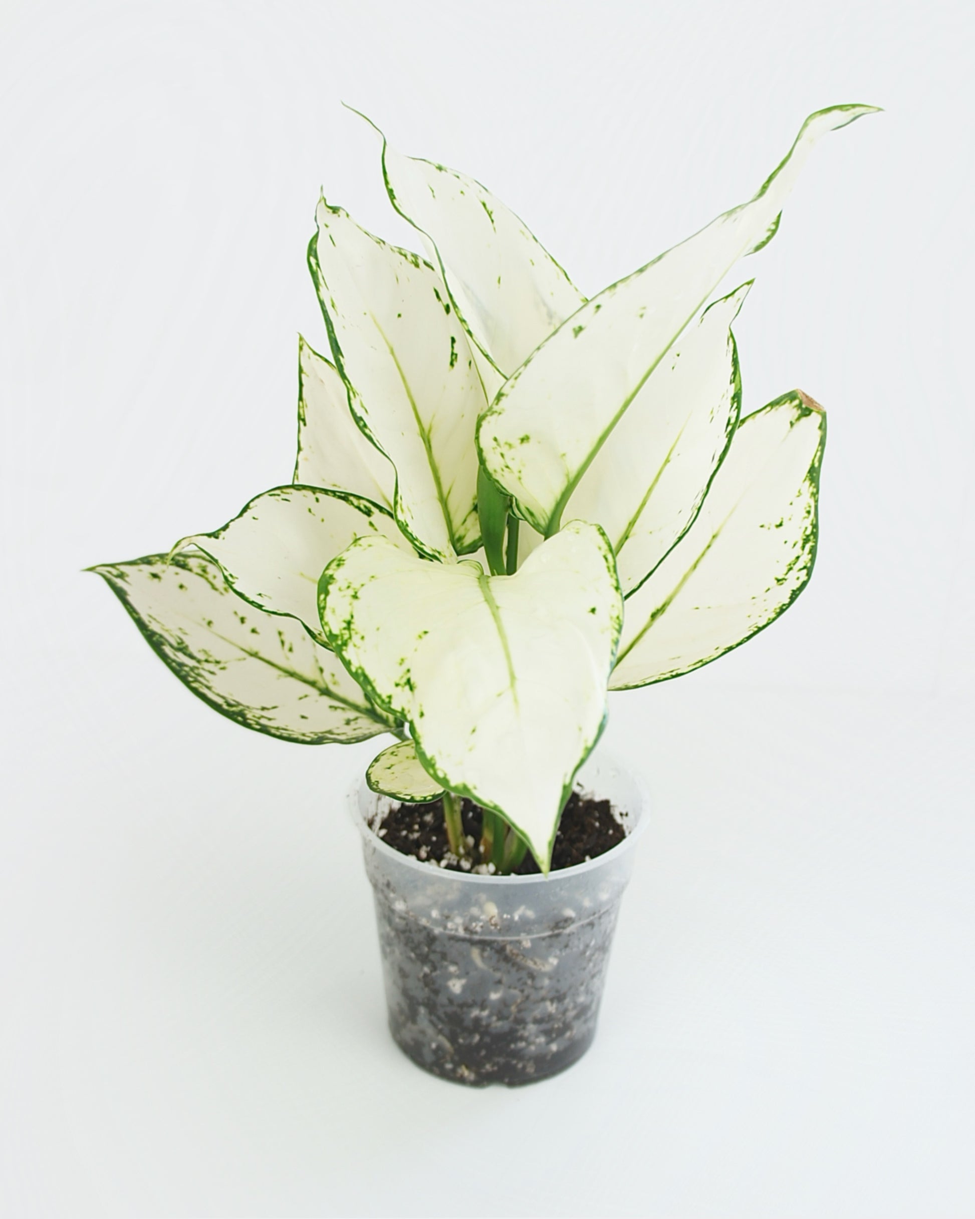White Joy avec son feuillage blanc crème éclatant, contour vert de ses feuilles et légère transparence.