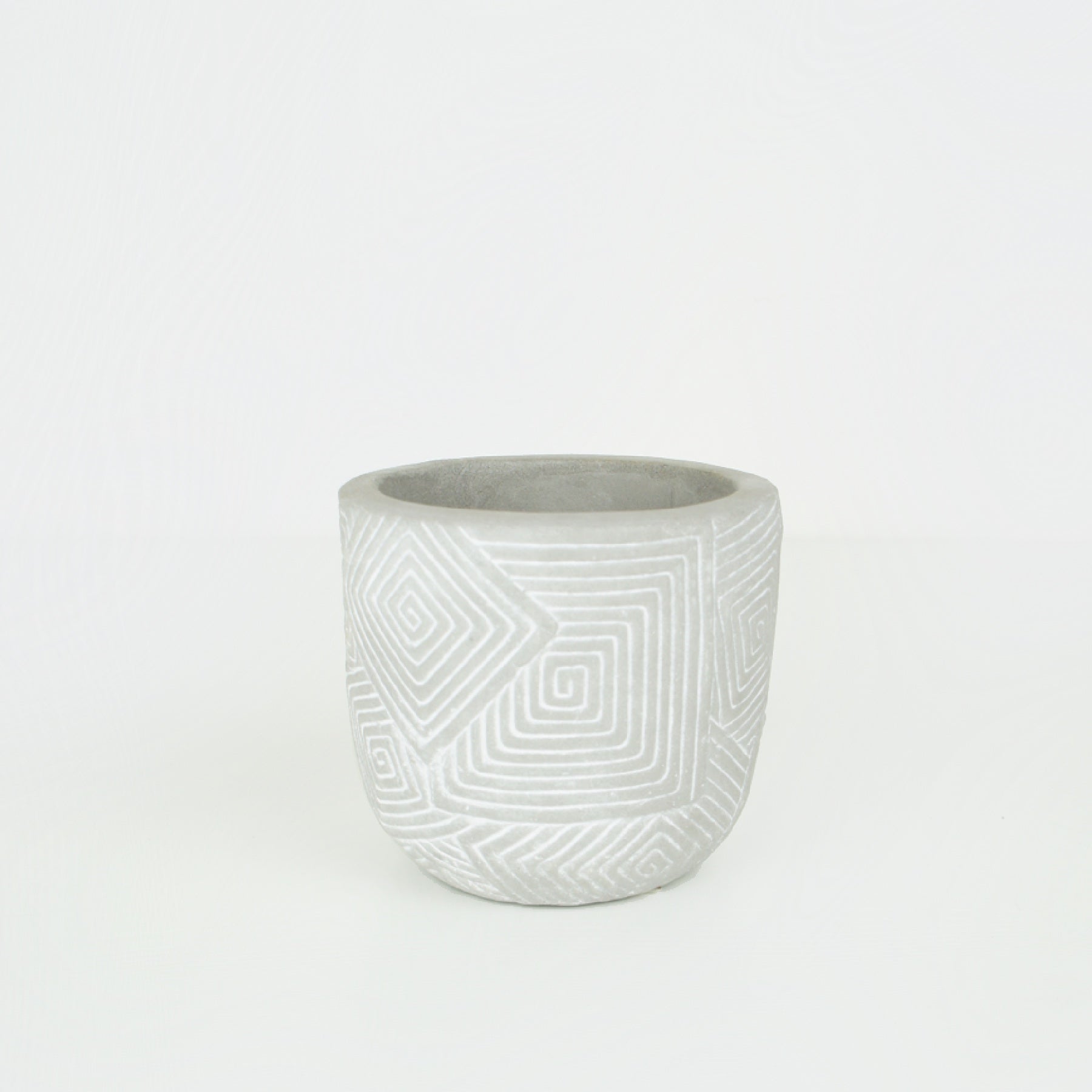 Une touche graphique et moderne à vos plantes avec ce petit pot en béton brut au motif gravé. Son design géométrique en relief blanc contraste avec le gris minéral du béton, pour un rendu à la fois brut et raffiné.